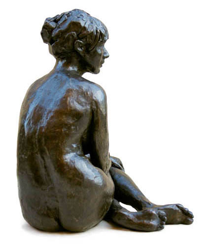 Sarah was modelled in clay and a rubber mould made then she was cast in resin and finished with a dark bronze patina.